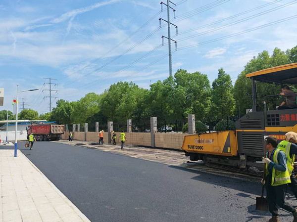 我司负责该项目工程的沥青摊铺工作,含沥青砼的运输、摊铺、碾压成型。我司采用4cm厚AC-13改性沥青混凝土进行铺筑其面层(含粘层油喷洒及防裂贴处理),工程量约7550平方;