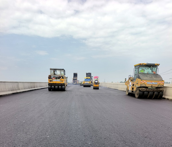 上跨合九铁路立交工程是省道S232的一段,也是合安高速郭河道口连接线的最后一处瓶颈。项目全路段按照双向六车道一级公路标准建设,设计路基宽43米,时速80公里/小时。我司主要负责该道路工程沥青路面施工,含沥青砼的生产、运输、摊铺等。根据道路设计要求:底层为6cm中粒式AC-20(改性)沥青砼,面层为4cm细粒式AC-13(改性玄武岩)沥青砼。该项目与合安高速、徽州大道、合铜公路、庐巢路、二军路,以及即将建设的岳武高速、黄陂湖大道,共同构成庐江县公路交通主框架。