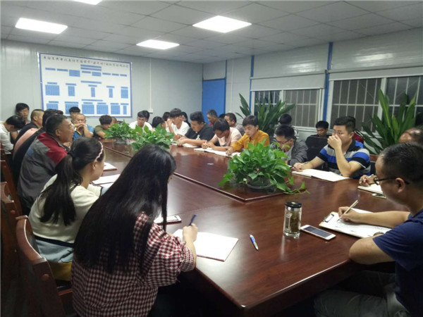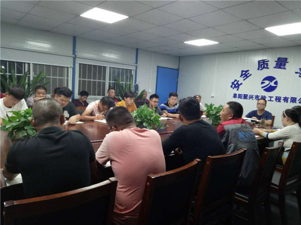 9月26日,聚兴市政召开全体员工工作会议,工程部、生产部、财务部、办公室、实验室等各部门人员参加会议,会议由总经理卫永培主持。