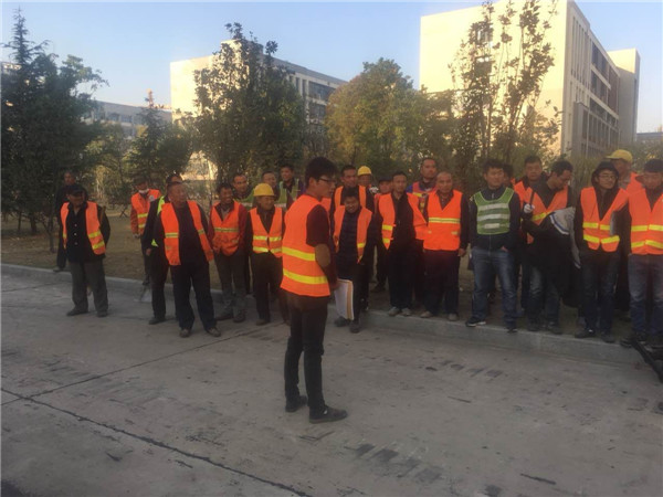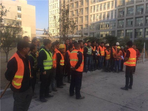 施工前应邵总要求,由吴亚飞负责对参与施工人员进行五分钟安全讲话。确保每个员工施工前穿好反光衣,以最佳的工作状态迎接新的一天!