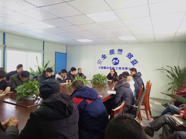 2018年1月28号上午,聚兴市政召开全体员工工作会议,会议由总经理卫永培主持,副总经理周雄、生产部、工程部、财务部、人事部、经营部以及物资部负责人在内的全体员工参加会议。
