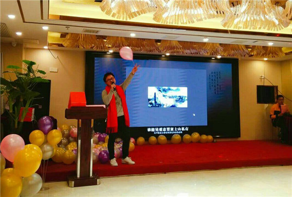17点18分,随着全场灯光全熄的瞬间,大屏开始播放安徽力聚宣传片,之后由聚兴市政总经理卫永培上台致辞。