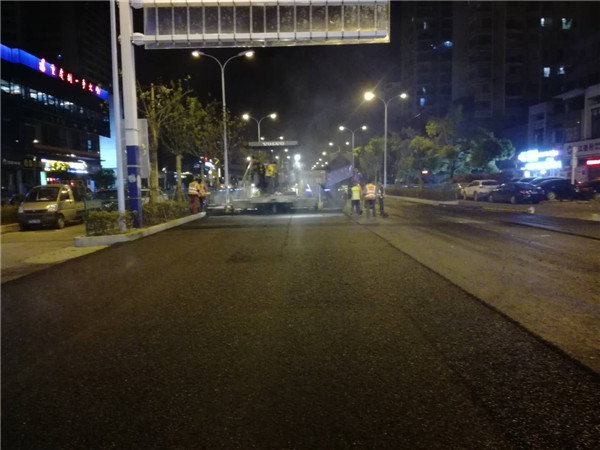 该项目位于临泉路与全椒路交口,项目总面积为12900m²,全长900m,整幅15m,双向4车道,沥青砼用料设计厚度底层为8cmAC-25,面层4cmSMA-13。