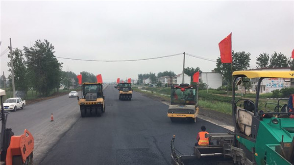 二、颍上县2017年乡级道路畅通工程7标段,起点位于颍上县东25公里处江店孜镇,终点至颍上县城东南15公里处的刘集乡,该标段全长12.27公里,路线整体呈南北走向,道路等级为三级公路,路面结构为沥青混凝土路面,路基宽11米,路面宽7.11米,其中机动车道底层采用5cm厚AC-16沥青混合料摊铺,面层采用3cm厚AC-10沥青混合料摊铺。
