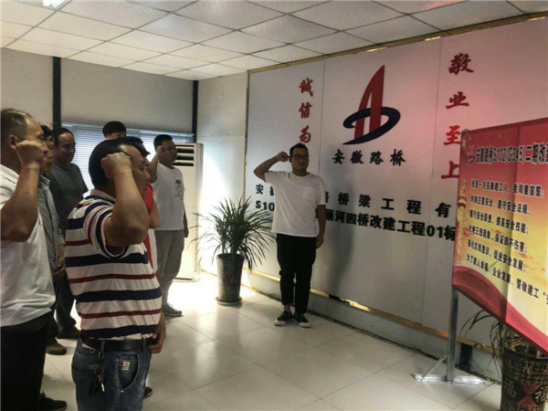 6月13日,聚兴市政所有前场人员应邀参加安徽省公路桥梁工程有限公司S102项目部举办的2018年“安全生产月”活动。
