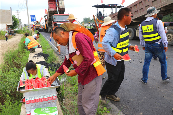 入夏以来,随着气温的不断升高,员工露天施工作业,体能消耗很大,为了切实做好一线员工的防暑降温工作,由安全部负责人夏晓云带队慰问队于6月26日为前后场员工送去了西瓜、毛巾、水杯、人丹、风油精、藿香正气水等防暑降温用品,深入到前后场施工一线,开展了暑期送清凉、送健康、送安全等慰问活动,把清凉送到了一线工作区域,把关怀送到员工的心坎。