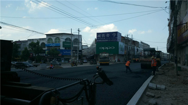 六安市叶集区X010姚李街道改造工程,项目起点位于裕安区交界处,与现状路相交,沿老路穿越姚李街道,终点至G312西150米,道路全长3.03公里,包括道路工程、排水工程及路灯绿化工程,其中沥青路面工程由舒城江城市政公司负责承建,沥青混凝土路面结构为:8cmAC-25+4cmAC-13,目前沥青底层已完工。