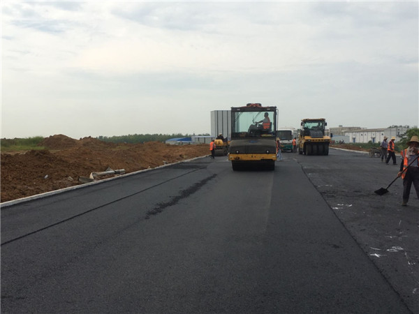 六安市博微长安电子有限公司厂区沥青道路工程,沥青混凝土路面结构为:5cmAC-20+4cmAC-13。