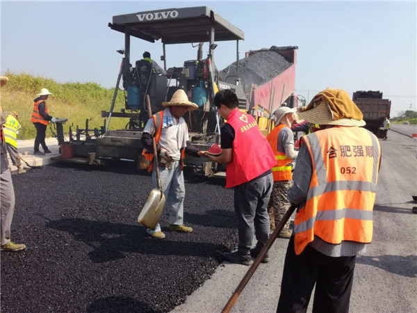 2018年8月8日—9日,集团党总支书记陈邦勤同志带领集团工会和党总支组织人员,前往盈宝、盛峰、海绵、强顺、华信等沥青施工现场进行慰问。正值盛夏酷暑,合肥本地最高温度达38度,我们的沥青料摊铺现场温度高达155度,集团工会和党总支给坚守在一线的施工人员送去西瓜、冰水等解暑用品,向他们致以亲切的问候和崇高的敬意。