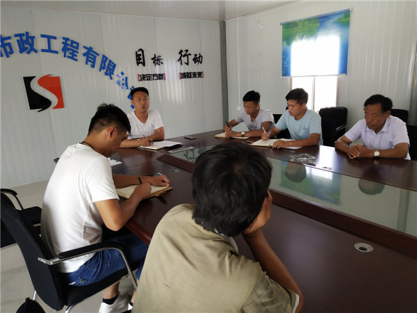 2018年8月5号,蚌埠四海市政工程有限公司召开了后场工作会议。此次会议由后场负责人周子朋主持会议,后场所有人员参加会议。