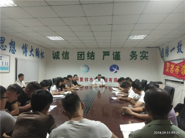 为全面掌握公司各职能部门8月份工作进展,落实集团各项规章制度,9月11日,聚祥市政召开全体工作会议,会议由宋中刚总经理主持,聚祥市政全体员工参加。