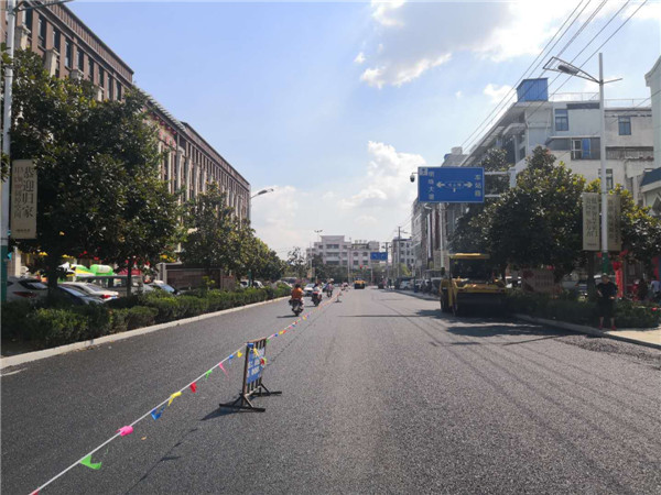 三界集镇双拥路综合改造工程,此项目为白加黑沥青路面,面积为8750平方米,修补旧水泥路面450平方米,拓宽沥青路面80平方米,铺装路面面积为24685平方米,新建水泥路面638.34平方米,沥青混合料类型机动车道底层7cm厚普通沥青石灰岩AC-25C,机动车道面层3.5cm厚改性沥青玄武岩AC-13C,此工程目前已经完工。