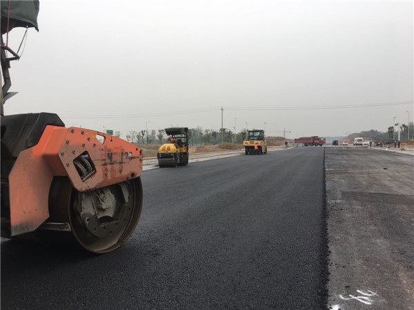 江城市政承接的六安市金寨县现代产业园半店路工程,半店路定位为次干路,为贯穿产业园区内部的南北向城市次干路。工程起自金石路,终点接大别山路,道路全长3.47千米,项目施工面积约60000平方,路面底层采用8 cm厚AC-25,面层采用4cm厚AC-13沥青混合料摊铺。