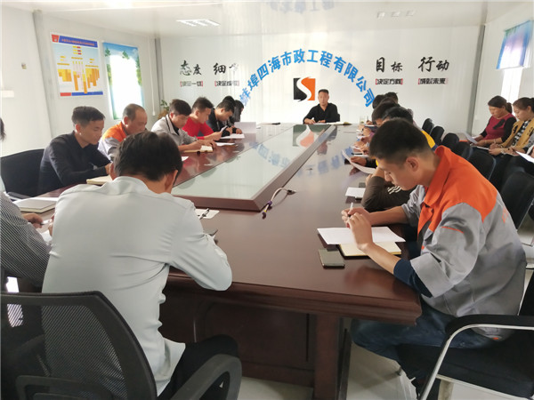 2018年10月25日,蚌埠四海市政工程有限公司召开本月工作例会,本次会议由总经理刘志主持,四海市政全体员工参加。