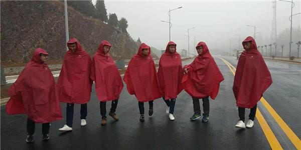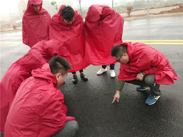 摩挲大雨,飘飘洒洒,参会人员一行首先来到了聚祥近期施工的重点项目--皇藏峪旅游观光大道。通过对刚完工路面压实度、平整度的观察、测量,秦主任让各站试验室主任提出发现的问题及如何规避此类问题的发生。