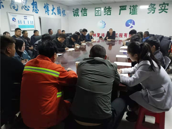 为切实落实安全施工和生产工作,2019年3月11日,聚祥市政召开了全体员工安全例会,会议由总经理宋中刚主持,集团分管领导杨总、聚祥全体员工参加。