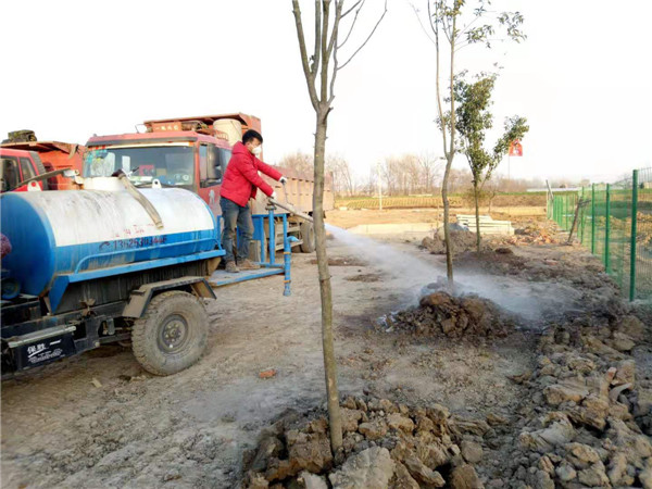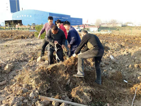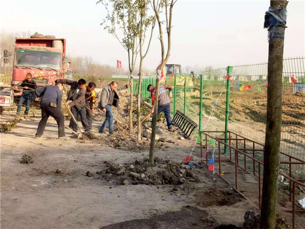 在植树活动中,聚兴市政员工在工会负责人夏晓云的带领下于下午两点准时共赴植树场地――公司生产区南侧通道旁。微风习习中,员工们在工人师傅的协助下,有序的加入植树活动的行列中,大家手持铁锹,干劲十足,伴随着辛劳的汗滴将一棵棵充满生机的树苗植入土壤中。纵然土中有很多石块,大家齐心协力为小树创建了一个舒适的窝,并为它浇灌生命之水。