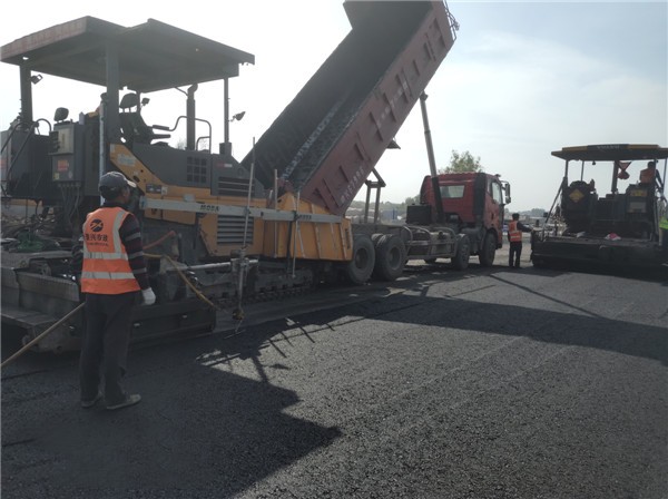 该项目由力聚集团阜阳聚兴市政工程有限公司承建,工程位于颍州区阜王路与柳林路两大城市主干路交叉口,工程设计要求为OGFC-13透水沥青,路面设计为单面坡1.5% 排水走向,园区下承层为砼面水泥板,道路下口设置水井,用于收集路面雨水和下渗雨水,工程摊铺总面积共计3800平方。