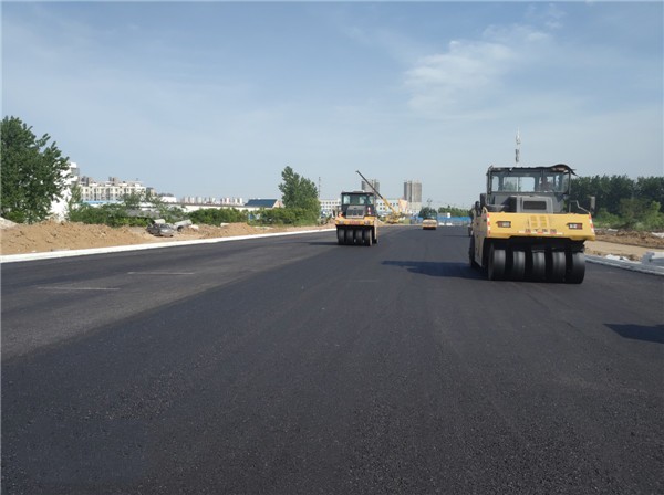 北京西路西延工程位于阜城北部,是泉北路网的重要组成部分,北起鹿坎路交叉口,南与古泉路相接,全长约2130米。建成后的道路红线宽60米,其中,机动车道22米,两侧绿化带各6米,非机动车道各6米,两侧绿化带各3米。机动车道采用8cm厚AC-25粗粒式沥青砼 + 5cm厚AC-20中粒式沥青砼 + 4cm厚AC-13细粒式沥青砼摊铺;非机动车道采用5cm厚AC-25粗粒式沥青砼 + 5cm厚AC-16中粒式沥青砼 + 3cm厚AC-10细粒式沥青砼摊铺。