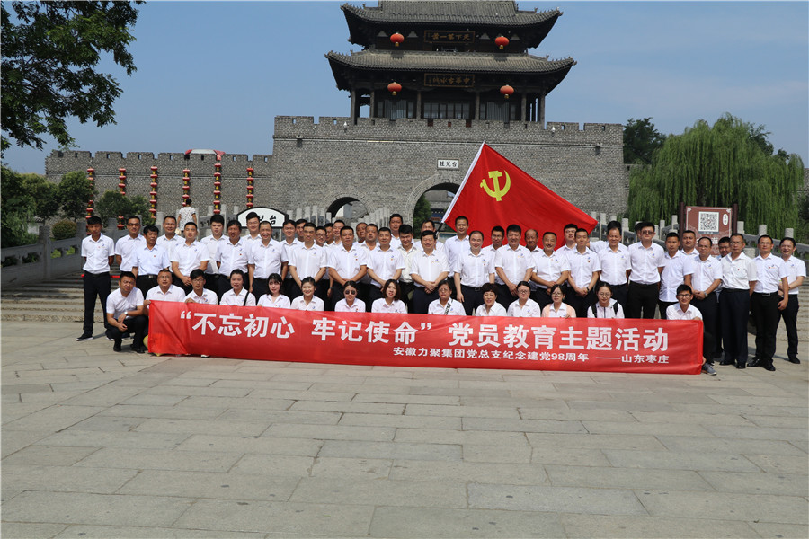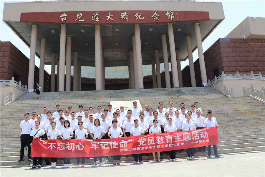 为庆祝中国共产党建党98周年,重温党的光辉历史,高举党的伟大旗帜,认真学习贯彻新时代中国特色社会主义思想,全面提升力聚集团全体党员的党性意识、增强使命感和责任感,6月30日—7月2日,集团党总支组织全体党员赴山东红色教育基地开展“不忘初心 牢记使命”党员教育系列活动。