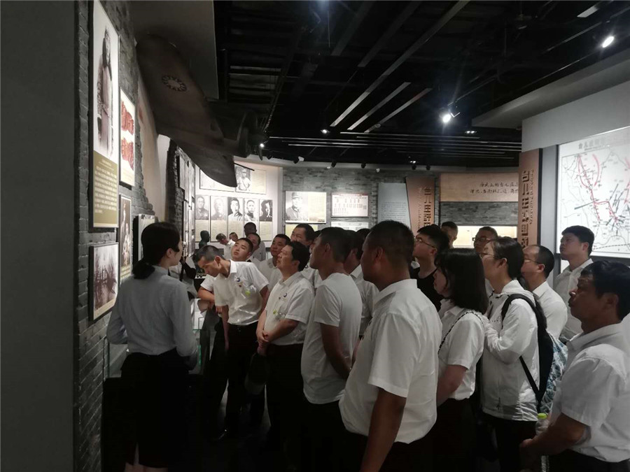 7月1日上午迎着骄阳,全体党员来到了位于山东枣庄薛城区的铁道游击队影视城。影城占地50余亩,建筑面积11800平方米,是一座具有民国时期建筑风格的城池。影视城内“枣庄老洋街”贯穿东西,街巷两侧店铺林立,石块路面自然有序。“义和炭场”“大茶房”“鸽子楼”“大兵营”“鲁南民俗博物馆”“沙沟炮楼”等建筑物,具有鲜明的清末民初的建筑风格,再现了当年老枣庄人的人文历史风貌。铁道游击队1940年1月26日正式成立,是奉鲁南人民抗日义勇总队司令员张光中之命,以刘洪、王强为主的抗日武装队伍,他们在津浦线上,截军列、打洋行、扒火车、炸桥梁,打得日伪军魂飞胆丧。铁道游击队以薛城为中心,挥戈于百里铁道线上,出没于万顷微山湖中,依靠群众,开展游击战术,与日本侵略者展开浴血奋战,奏响了民族救亡的最强音。全体党员同志观看了“义和炭场”刘洪等共产党人和日军作战,“和顺居饭庄”芳林嫂智斗汉奸等实景表演,参观了一幅幅珍贵的战斗图片,一段段引人入胜的事迹,穿越着历史时空,激荡着大家的心灵,仿佛置身在铁道游击队机制灵活,消灭日本鬼子的战斗场面里,跟着他们英勇杀敌,建立奇功。