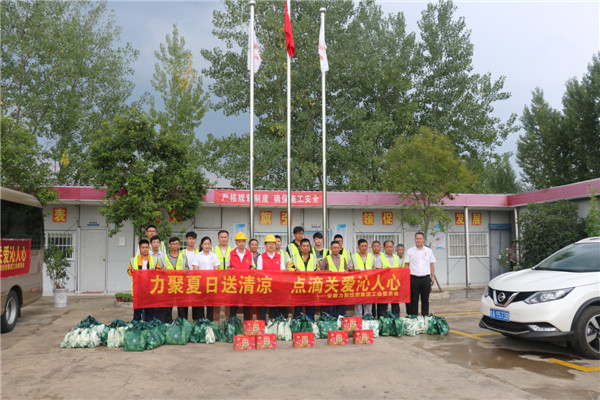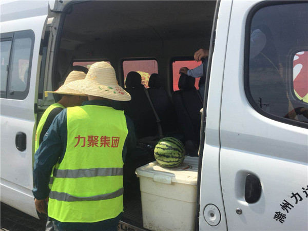 骄阳似火,酷暑难耐,炽热的阳光把地下的砂石晒得烫人,然而力达市政的一线工作人员顶着骄阳,冒着高温,仍然坚守岗位。为了确保公司施工人员安全和健康,力达市政公司采取了多种防暑降温措施,公司专门安排工作人员给一线职工送上绿豆汤、西瓜等降温饮品,将各类防暑降温物品送到一线工人手中。