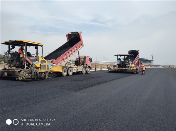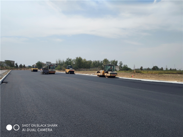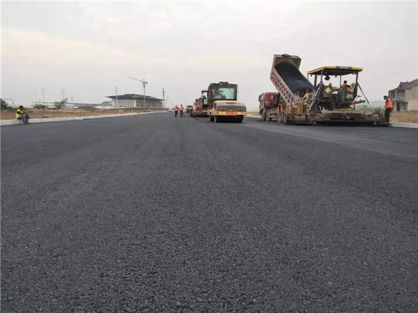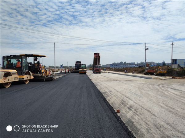 该项目属于在建工程,中层沥青摊铺正紧张有序地开展中。