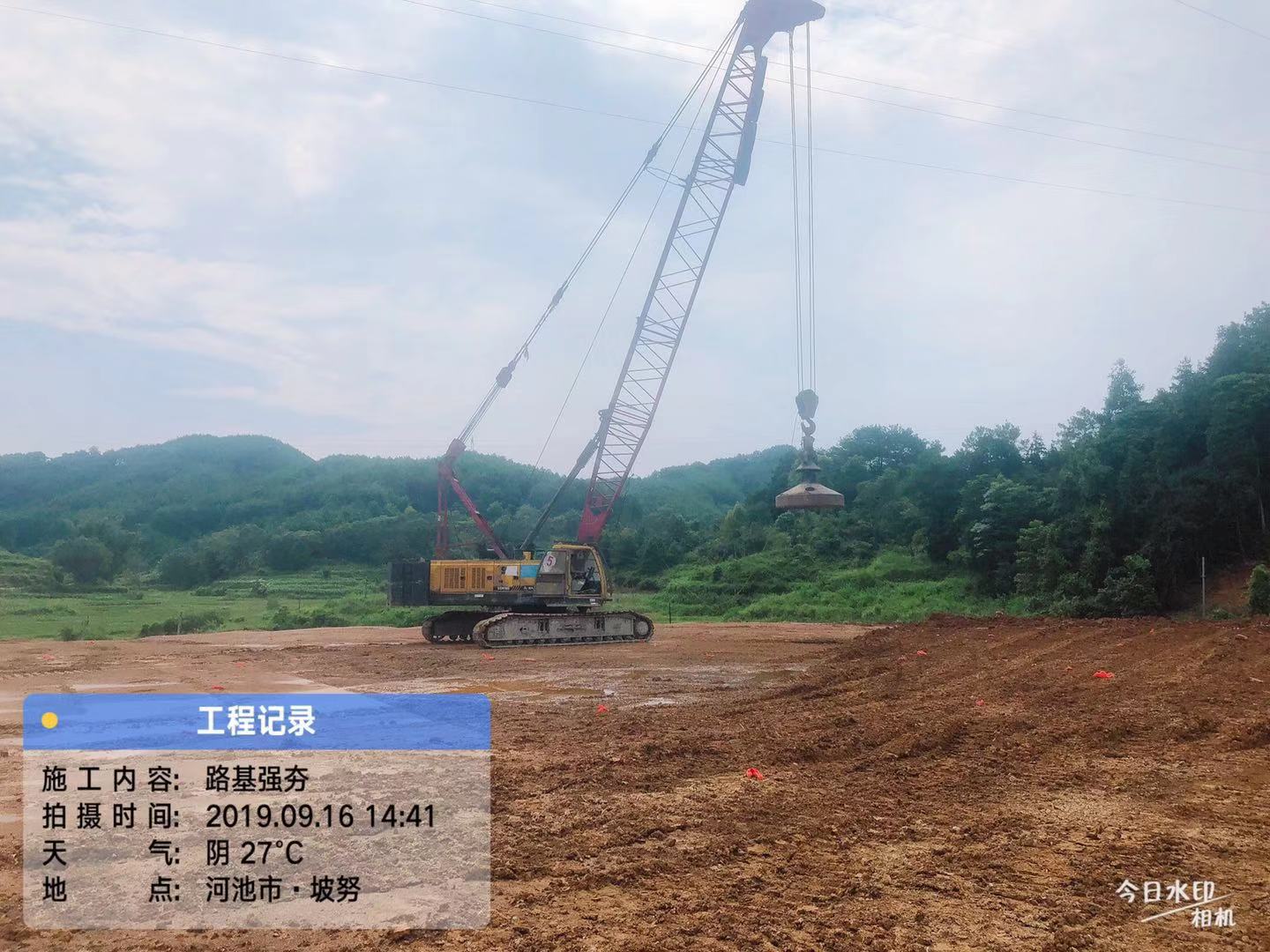 随着时代的发展,城市也在以基础设施的不断改善彰显着经济的快速发展,巴马项目目前正处于路基土石方施工阶段,该路段填方高差大,难度系数大,地质条件差,为保证路基质量满足设计规范要求,该路段采取强夯施工工艺,从而满足道路路基的各种技术指标达到施工效果。强夯机械于9月14日进场组装,这也是我司第一次接触强夯施工技术,我司将在严格把好质量关保证施工质量的前提下,加快推进施工进度,确保按时完成目标任务。