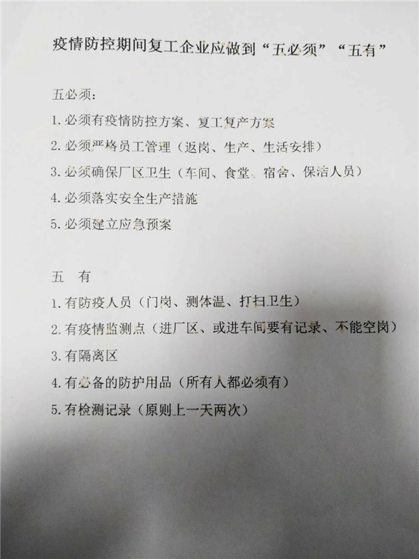 督导组一行先后对公司复工文件、疫情防控工作方案、疫情防控组织、公司疫情防控卡点设置、宣传及教育、复工人员管理、职工防护、疫情防控物资储备等几大模块进行全面督导检查,重点对复工人员动向进行严格检查,排查登记有无员工到过湖北及武汉等重症地区、是否接触过确诊病例人员、是否按照疫情防控指南进行居家隔离等情况。