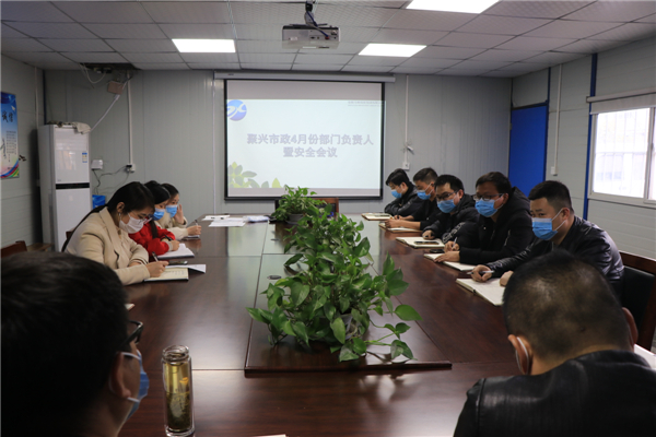 2020年4月1日下午,聚兴市政召开4月份部门负责人会议暨月度安全会议,会议由总经理卫永培主持,集团分管领导武勇、公司副总周雄及各部门负责人参加此次会议。