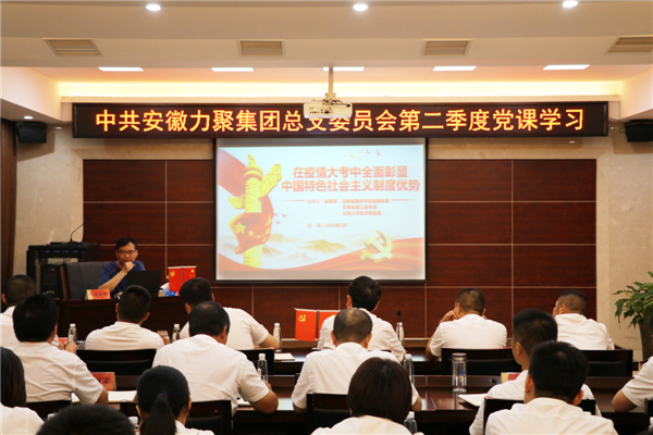 2020年6月30日下午,力聚集团党总支在11楼会议室组织开展纪念建党99周年党课学习活动,本次党课邀请到安徽大学裴德海教授作《在疫情大考中全面彰显中国特色社会主义制度优势》专题讲座。