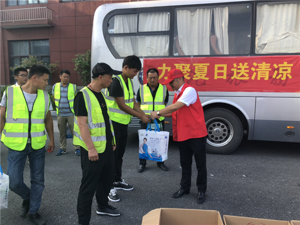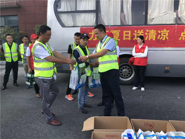 炎炎夏季,高温持续,为关心基层员工的身心健康,传递集团对员工的关爱,营造良好和谐的工作氛围,切实做好夏季防暑降温工作,2020年8月5日,集团开展了“情系员工,夏送清凉”高温防暑慰问活动。集团领导武勇带领工会成员和日繁党支部成员顶着滚滚热浪来到合肥中团市政工程有限公司,向坚守在工作岗位上的一线员工进行慰问。