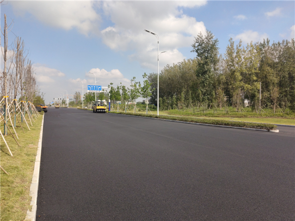 该项目位于阜阳合肥现代产业园区,是阜阳的一条东西向重要城市主干路,属于新建道路,东起西湖大道,西至颍淮大道,采用双向八车道标准建设,线路全长6751.384 米。我司本次施工内容主要为项目沥青路面摊铺,经过4月份以及8月下旬和9月上旬的施工,项目于2020年9月16日正式完工。
