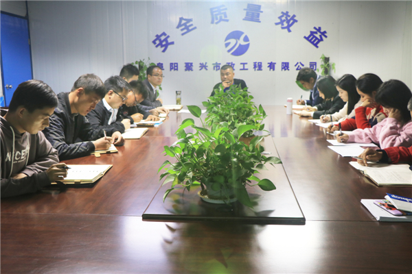 2020年10月15日,阜阳聚兴市政工程有限公司召开本月部门工作会议,会议由总经理卫永培主持,集团沥青板块分管领导武勇、公司副总经理周雄及各部门负责人参加此次会议。