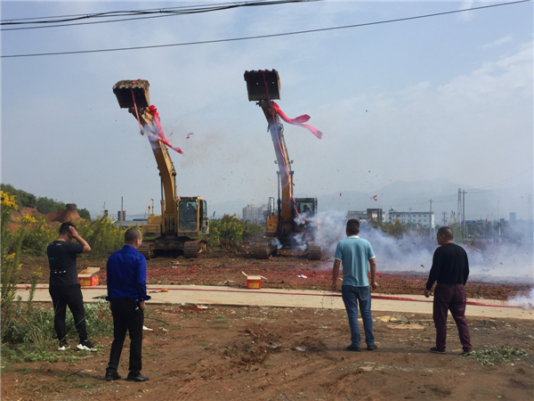 致辞结束后,陈书记宣布开工令。随后,开工现场两台挖掘机为项目奠基培土,现场礼炮齐鸣、彩烟四射、机器轰鸣,当地电视台也对进行现场实时播报。此次宁国市港口镇“年产40万吨海绵城市综合节能环保型排水路面材料生产基地”项目建成投产后将实现集团沥青产业的转型与升级,有力推动集团“二五”计划目标的实现,并有望成为港口镇一个新的持续经济增长点。