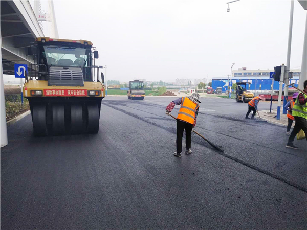 该项目是北接线道路及南接线道路(0+381至0+600)工程,本次施工内容为辅道路面沥青摊铺,施工用料为底层8cmAC-25C,面层4cm改性AC-13C。