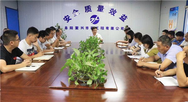 2021年6月18日,阜阳聚兴市政工程有限公司召开本月工作会议暨安全会议,会议由总经理卫永培主持,公司各部门负责人及全体员工参加。