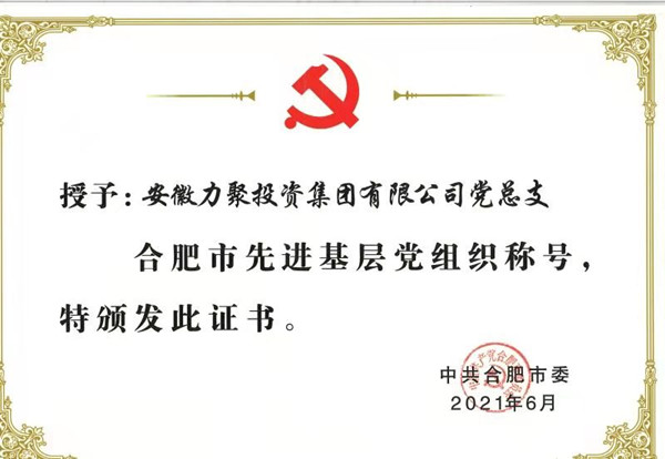八年来,力聚集团始终坚持不忘初心、牢记使命,把党建引领贯穿工作,始终做正能量的传播者,通过树企业正气,鼓员工士气,凝聚人心、打造团队,有力助推企业发展,受到员工的普遍认同,形成了生机勃勃、蒸蒸日上的发展局面。在上级党组织的关心与大力支持下,公司党总支连续多次被评为经开区优秀基层党组织称号:2018年荣获合肥市“双强六好”非公企业党组织称号、2020年荣获安徽省“双强六好”非公企业党组织称号、2021年6月份荣获“合肥市先进基层党组织”称号。