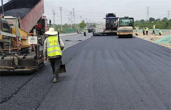 我司承担的工程内容为道路路面沥青砼施工。根据道路设计方案,机动车道路面结构为:底层为AC-25C沥青混凝土,厚度8cm;中层为AC-20C改性沥青混凝土,厚度6cm;面层为AC-13C改性沥青混凝土,厚度4cm。