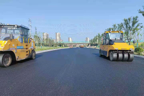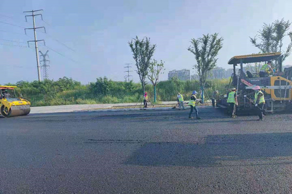 我司主要负责该项目路面沥青砼摊铺施工,道路总设计厚度为8cm+6cm+4cm,施工底层为8cmAC—25普通沥青砼,中层为6cmAC—20普石灰岩(外加0.3%抗车辙剂),面层为4cmAC—13改性玄武岩。