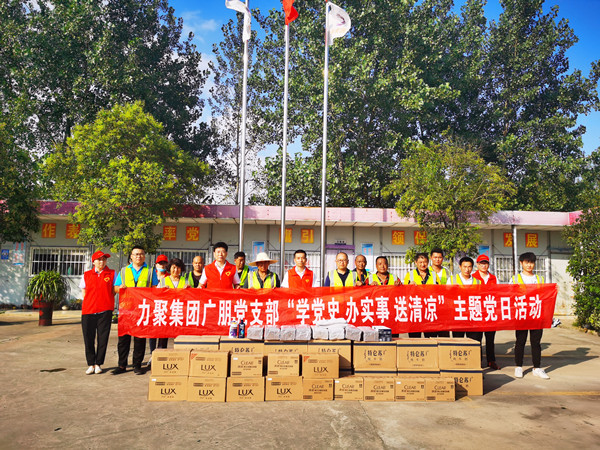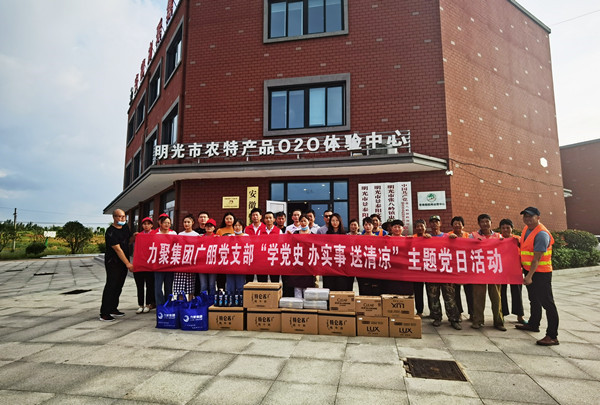 2021年8月3日,为了积极响应集团党总支号召,关爱关心集团各公司奋斗在夏季高温酷暑一线的辛勤员工,广朋党支部特组织开展“学党史 办实事 送清凉”主题党日活动。