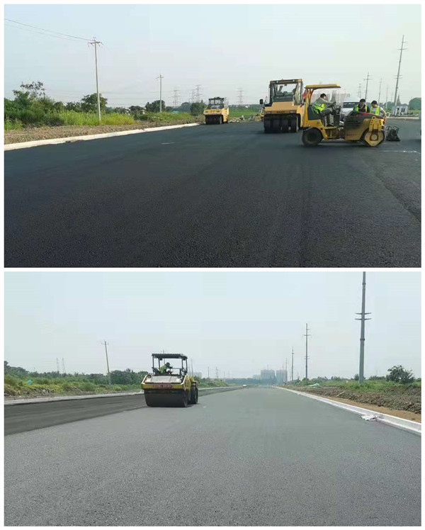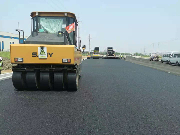 我司承担的施工内容为主路沥青砼摊铺,总设计厚度为8cm+6cm+4cm,底层为8cmAC—25普,中层为6cmAC—20普加0.3%抗车辙剂,面层为4cmAC—13改性玄武岩。