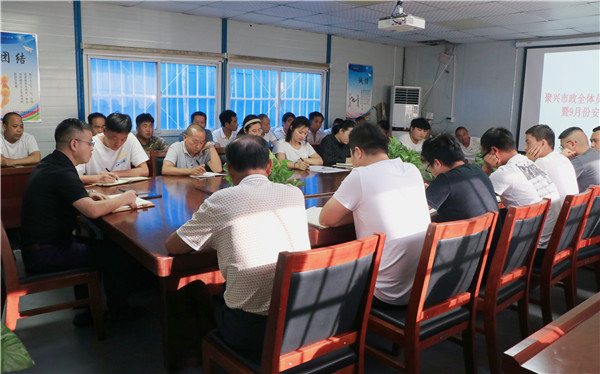 2021年9月11日,阜阳聚兴市政工程有限公司召开本月工作会议暨安全会议,会议由总经理卫永培主持,公司各部门负责人及全体员工参加。