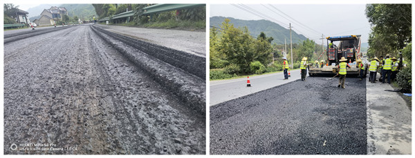 我司主要负责该重建工程的沥青砼面层施工。根据道路设计方案:机动车道路面层结构:上面层为:4cmAC-13石灰岩SBS改性,下面层为5cmAC-20石灰岩。该回复工程的实施有利于恢复灾毁路段行车安全,消除安全隐患。