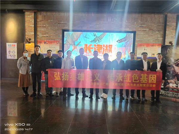 会议结束后,支部组织全体党员前往滨湖世纪金源华谊兄弟影院观看红色题材电影《长津湖》,为党员同志们上了一堂生动鲜活的党史课,进一步推动了广朋党支部党史学习教育深入开展。