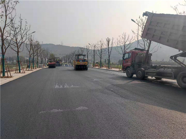 我司主要负责该项目路面沥青砼摊铺施工,道路总设计厚度8cm+4cm,底层为8cmAC—25普加0.3%抗车辙剂,面层为4cmAC—13改性玄武岩加0.3%抗剥落剂。