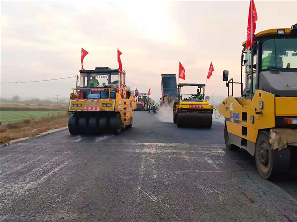 我司主要负责该项目主路沥青砼摊铺施工,根据道路设计要求:底层为8cmAC—25C,中层为6cm岩沥青AC-20C,面层为4cmAC—13C改性玄武岩加0.3%抗车辙剂。