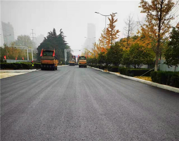 我司主要负责该项目主路沥青砼摊铺施工,道路总设计厚8cm+6cm+4cm,沥青透层,下面层为8cm粗粒式沥青混凝土AC—25C,中面层为6cm中粒式改性沥青混凝土AC-20C,上面层为4cm细粒式改性沥青混凝土AC—13C(玄武岩,+0.3%抗剥落剂)。