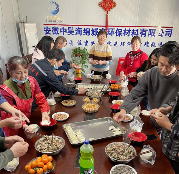 为弘扬中华优秀传统文化,推进企业文化建设,增强员工的凝聚力、向心力,营造团结和谐、积极向上的良好氛围,2021年12月21日下午,安徽中昊海绵城市环保材料有限公司组织开展“情暖冬至”包饺子主题活动。