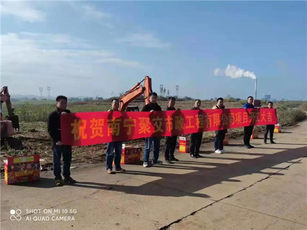 2022年1月18日上午10点06分,广西南宁聚交市政工程有限公司“年产40万吨海绵城市综合节能环保型排水路面材料生产基地”项目正式开工建设,该项目位于广西壮族自治区南宁横州市六景产业园区,是力聚集团首家省外全新智能环保沥青站。力聚集团建设板块负责人宋执福,广西横州六景产业园和南宁交投集团部分负责人参加开工仪式。